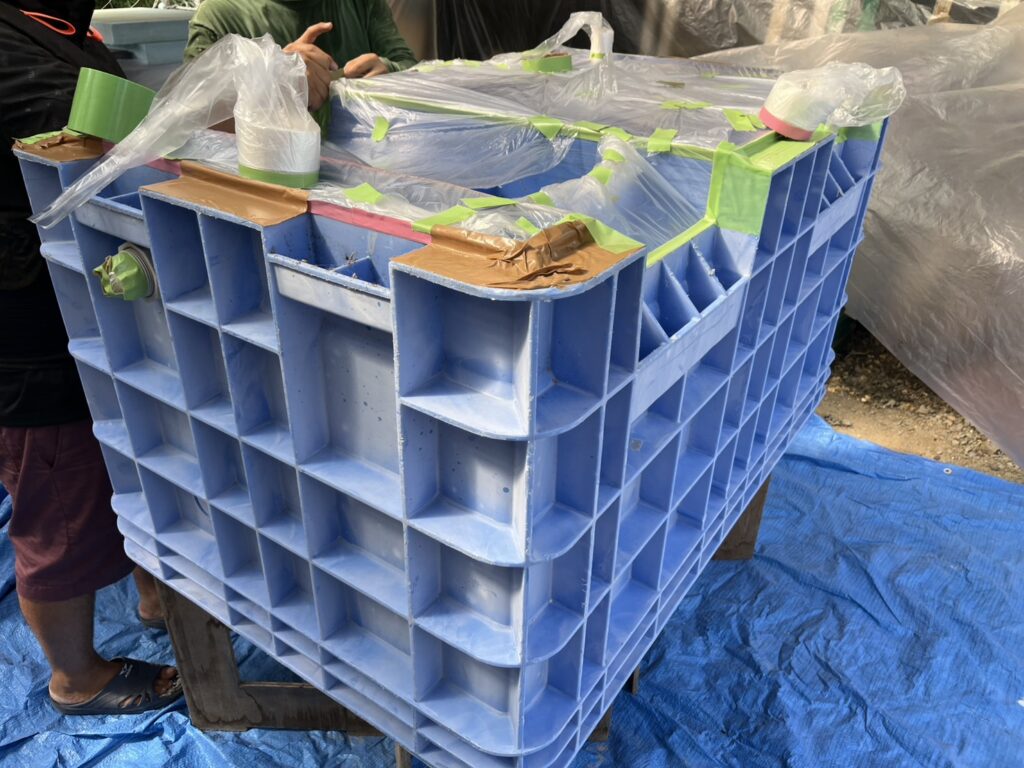 本日はスカイタンク(漁獲物の運搬・保管用コンテナ)のウレタン吹付についてです。